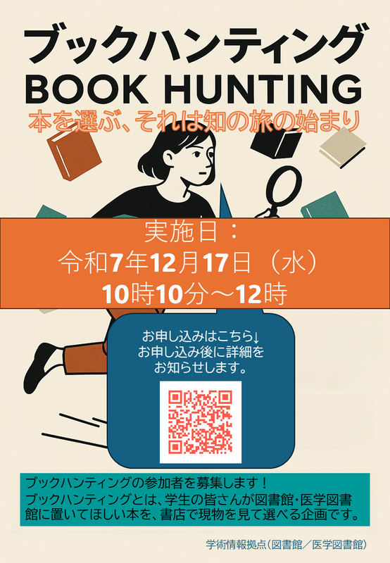学⽣の皆さんが図書館‧医学図書館に置いてほしい本を、書店で現物を⾒て選べる企画です。 購⼊決定後は、本の紹介⽤POP(または⼀⾔コメント)を作っていただき、図書館に併せて展⽰します。