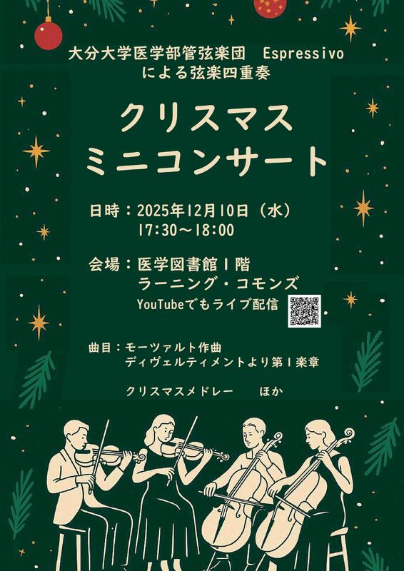 大分大学医学部管弦楽団 Espressivoによる弦楽四重奏クリスマスミニコンサート